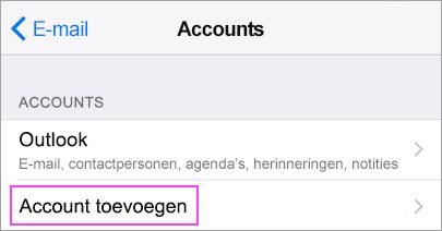 Ga naar Instellingen op het apparaat, schuif omlaag naar E-mail > Accounts > Account toevoegen.