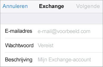 OPMERKING : Als je niet zeker weet wat je Exchange-e-mailadres of -wachtwoord is, neem dan contact op met de beheerder van je organisatie.