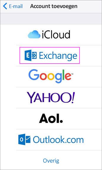 Dit is voor e-mailaccounts en domeinen die worden gehost door Exchange. Mogelijk heb je serverinstellingen van je e-mailprovider of beheerder nodig.